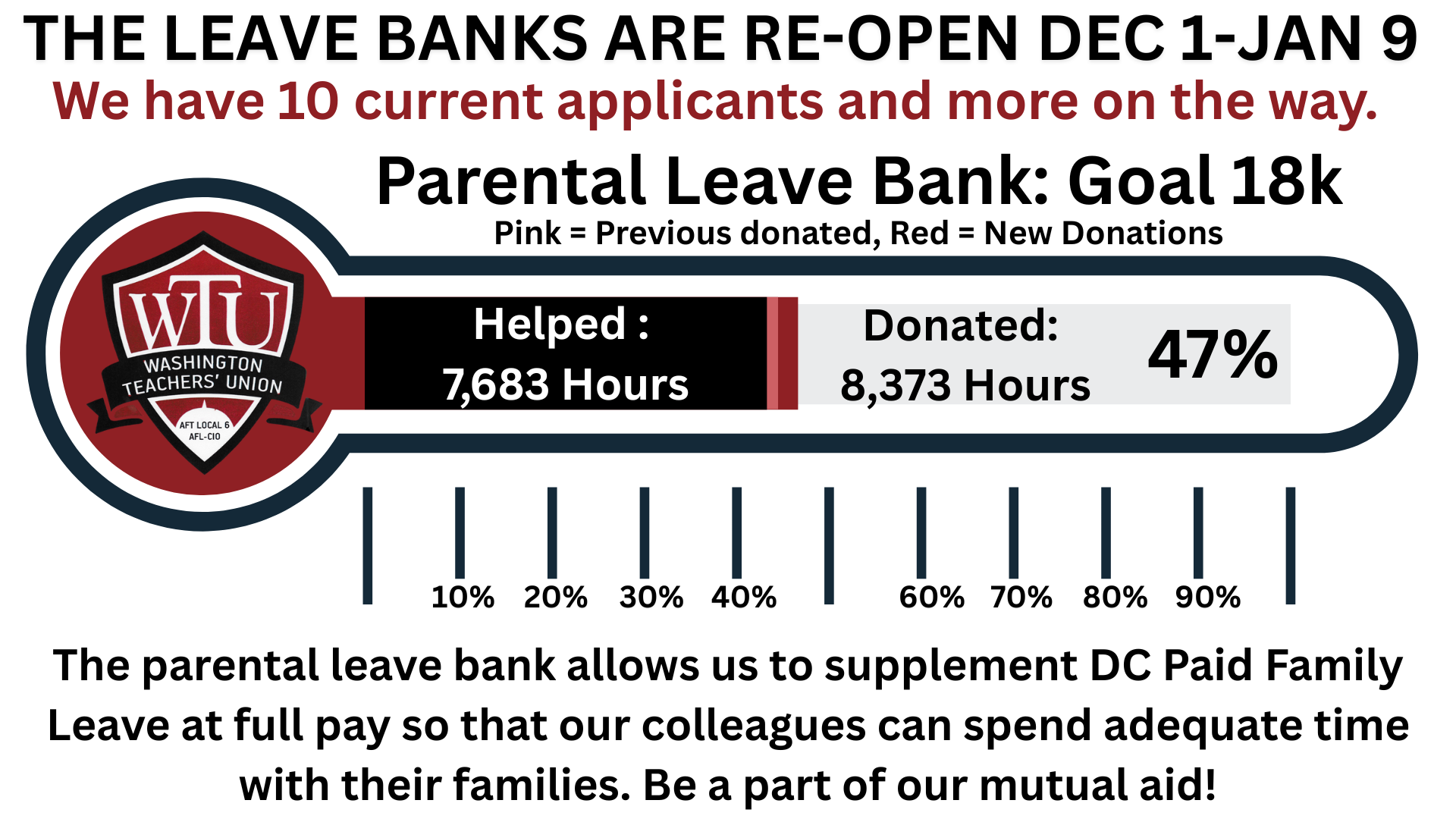 - Joining the Sick Leave Bank ensures that it is solvent for the rest of the the year, and if we get enough donations we will hopefully be able to provide retro to those who did not get access to the banks during the Spring of SY25.